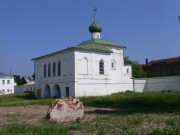 Монастырский участок имеет форму неправильного многоугольника, вытянутого с запада на восток, и окружен оградой с четырьмя башнями и надвратной церковью Николая Чудотворца (1688 г.) над Святыми воротами в восточном прясле. Бесстолпный одноглавый четверик, трапезная пристроена в 1849-1854.