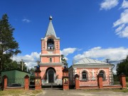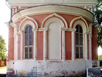 ЦЕРКОВЬ ПЕТРА И ПАВЛА, кон. 19 в. Стоит на кладбище на окраине села, у опушки березовой рощи. Сооружена в кон. 19 в. на месте одноименной деревянной (1789); стены кирпичные, оштукатуренные цементным раствором. Скромный сельский храм, в архитектуре которого объемно-пространственное решение в духе позднего классицизма сочетается с элементами русского стиля. Полукруглая одноярусная апсида, двусветный бесстолпный куб основного объема, равная ему по ширине прямоугольная трапезная (одной высоты с апсидой) и квадратная в основании трехъярусная колокольня "нанизаны" на одну ось и связаны единой линией карниза, венчающего апсиду, трапезную и нижние ярусы колокольни и храма. Храм покрыт четырехскатной железной кровлей, в основание которой с каждой стороны врезан полуциркульный фронтон с килевидным обрамлением. Над кровлей на световом барабане возвышается луковичная глава. Мотив полукружия в килевидном обрамлении повторен в арках верхнего яруса колокольни. Она перекрыта деревянным, обитым жестью шатром со слухами на гранях и луковичной главкой в завершении. Декор фасадов включает также квадратные нишки-ширинки - двухслойные и однослойные, с равноконечными рельефными крестами. Из паперти под колокольней высокий проем ведет в трапезную, перекрытую цилиндрическим сводом. Трапезная объединена с храмом широкой аркой. Три невысокие арки ведут в апсиду.