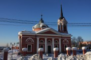 Одноглавое здание храма выдержано в стиле зрелого классицизма, напоминающего школу Матвея Казакова. Четверик храма, украшенный с трех сторон четырехколонными портиками под высокими фронтонами на юге и севере, завершен несколько непропорционально маленьким куполом с четырьмя полуциркульными окнами и небольшой вышкой. Крайне невыгодное расположение купола заставляет предполагать о неосуществлении замыслов автора: всего вероятнее, он мыслил себе еще и барабан, который, безусловно, придал бы иной строй всему храму.