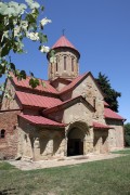 "Среди росписи особенно выделяется фреска нижней части северной стены, выполненная ок. 1207 г., где изображены царь Георгий III, его дочь св. царица Тамара и ее сын Георгий-Лаша, фланкированные фигурами двух святых воинов. Эта фреска была несколько раз переписана, однако современным реставраторам рентгеновским и ультрафиолетовым способом удалось воспроизвести первоначальный лик царицы, содержащий много портретных черт ее лица. Редки по иконографии фрески в окнах на сев. стене: "Иуда, получающий 30 сребреников", разделенная на 2 части сцена омовения ног, "Моление о Чаше", "Предательство Иуды", "Страждущий Петр", "Пилат, умывающий руки". Цикл Распятия обогащен историческими подробностями - сосуд для оцта, раздравшаяся завеса храма.