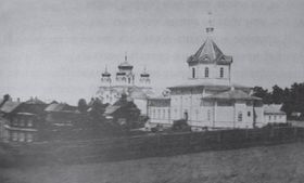«Основательницей Кутузовской Богородицкой общины является монахиня Надежда, в миру Неонилла Борисовна Захарова... Церковь деревянная, на каменном фундаменте, двухглавая, двухпрестольная; главный престол в честь Пресвятой Богородицы Утоли моя печали, придельный – в честь Божией Матери Скоропослушницы; построена стараниями сестер Общины и на средства благотворителей в 1869 году. – Колокольня деревянная, в четыре сажени высотою; построена заботами начальницы Общины Марии Апариной в 1878 году; колоколов на ней восемь; больший в 52 пуд. 7 ф.».