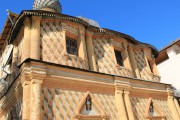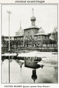 Церковь иконы Божией Матери «Одигитрия» - последнее по времени самостоятельное сооружение Архиерейского двора. Построена в 1692-1693 г.г. Церковь была возведена уже после кончины митрополита Ионы Сысоевича при его преемнике митрополите Иоасафе. Расположена в северо-западном углу Ростовского кремля и примыкает к стене, окружающий двор. В архитектуре храма отразился пришедший в Россию стиль, получивший название «нарышкинское барокко». Впрочем, как считает В.Н. Иванов, «в архитектуре церкви Одигитрии признаки нового стиля звучат робко, уступая место формам середины XVII в. Традиционен её кубический объём с большими апсидами; традиционна аркатура на фасадах и на барабане купола. Её уже большие окна украшены наличниками с разорванными фронтонами, вместо лопаток - парные полуколонны, вместо галереи - открытое гульбище».