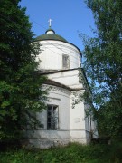 Расположена на западной окраине города, на небольшой возвышенной площадке на склоне холма над Волгой. Играет важную роль в городской панораме. Построена в 1840-49 гг. на месте мужского Спасо-Преображенского монастыря, упраздненного в 1764 г. Здание кирпичное, побеленное. Интересный пример храма в северной части области, выполненного в запоздалых формах раннего классицизма и обладающего подчеркнуто монументальным обликом. Основной объем состоит из большого четверика с преувеличенно крупным аттиком, над которым возвышается ротонда также с аттиком и купольной кровлей, увенчанной миниатюрной главкой на барабанчике. Суженный полукруглый алтарь и равная по ширине четверику квадратная трапезная понижены. Массивная трехъярусная колокольня состоит из двух четвериков (нижний — с полуярусом) и восьмигранного яруса звона с главкой в завершении. Скромное декоративное убранство имеет плоскостной характер и включает неглубокие прямоугольные ниши на четверике, в которые помещены прямоугольные проемы, антаблемент с сухариками, завершающий алтарь, трапезную и основной ярус четверика, тяги на аттике и пилястры на ротонде. Рамочные наличники окон с сандриками соединены тягой, окна ротонды не имеют обрамлений. Боковые фасады трапезной и четверика в три оси, на средней оси в четверике расположены входы. Основной объем с мощными угловыми пилонами и переброшенными между ними арками соединен при помощи парусов с ротондой и завершен сферическим куполом. В алтаре и трапезной перекрытия плоские. В нижнем ярусе колокольни - коробовые своды. В куполе сохранились фрагменты живописи.