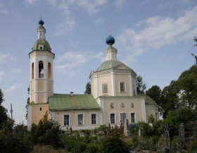 Особенно интересна архитектура колокольни. Ее нижний ярус представляет собой невысокий прорезанный входной аркой четверик, украшенный угловыми лопатками. Над четвериком поднимается три восьмигранника, верхний из которых прорезан высокими узскими арками и перекрыт сомкнутым сводом. На свод поставлен еще один небольшой изысканный по отделке восьмерик, увенчанный фигурной главкой. Использование сомкнутого свода вместо обычного в такого рода композициях шатра, камерность размеров, мягкость линий, легкая асимметрия в деталях придают облику колокольни оригинальность и привлекательность.