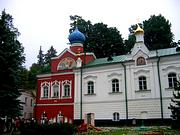 "В монастыре же, на место снесенной церкви /Сорока Мучеников севастийских/ преподобный Корнилий поставил каменную церковь, во имя Благовещения Пресвятая Богородицы в 1541г." "В 1803г. устроен придел, во имя Благоверных князей Бориса и Глеба, перенесенный сюда с верхнего этажа той же церкви, и другой придел, во имя Варлаама Хутынского, перенесенный сюда из палатки, находившейся в колокольне" /главной звоннице/. Возобновлен в 1872 году на средства братии и освящен в том же году 24 августа Преосвященным Павлом, Епископом Псковским и Порховским, бывшим настоятелем и священно-архимандритом сей обители.