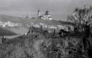 По писцовой книге города Мценска 1625 г. в Петровском монастыре были 2 деревянных, “клецких” храма: церкви Петра и Павла и Введения Пресвятой Богородицы с приделом Св. Ильи Пророка, обновленных на средства первого царя из династии Романовых — Михаила Федоровича. Рядом с церквами стояли кельи, где жили игумен и братья. В 70-е годы XVII в. стольником С. В. Рагозиным в монастыре строится каменный семиглавый соборный храм Введения Пресвятой Богородицы с тремя престолами: Введения Богородицы, Св. Петра и Павла и Св. Пророка Ильи. Тогда же, по-видимому, была разобрана 2-я деревянная монастырская церковь. В 1694 г. Петровский монастырь был переведен на новое место, ниже по течению Зуши, где продолжил свое существование под названием Петропавловского, а Введенская церковь обращена в приходскую. Колокольню при ней построили на рубеже XVIII и XIX вв. Перед первой мировой войной планировалось при Введенской церкви устроить скит, приписной к Петропавловскому монастырю, но это осуществлено не было.