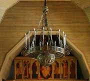 Целостностью отличается и интерьер храма, где боковые помещения органично вливаются в центральное пространство под шатром. В гармонии с архитектурой решены и малые формы: лавки, ограждения клиросов, аналои и даже подсвечники. Не нарушает впечатления старины и большое паникадило-хорос в центральной части храма. К древним образцам восходит и расписной трехъярусный (тябловый) иконостас, собранный из икон XVI-XVII веков, уникальный случай органичного синтеза "новодельной" архитектуры с древними живописными подлинниками. Ансамблевая слаженность, равновесие частей и деталей (даже в расположении икон) делают храм уникальным произведением искусства.