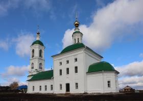 В1792 г. вместо ветхой деревянной церкви прихожане на свои средства поставили каменную с престолами в честь тех же святых (Апостола и евангелиста Иоанна Богослова и Пророка Божия Илии). При церкви каменная колокольня и ограда. В 1868 г. в главном храме поставлен новый резной позолоченный иконостас, стены расписаны священными картинами. В 1873 г. в Ильинском приделе также поставлен новый иконостас и вызолочен в 1876 г. Причт состоял из священника и псаломщика. В приходе только с. Ильинское. В селе была земская народная школа. В советское время храм закрыт и разграблен. Сломана ограда.