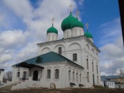 Спасо-Преображенский соборный храм, построенный еще в XVI в., первоначально был деревянным. Он находился в северо-западной части обители, на самом высоком месте. Вокруг алтаря собора располагалось монастырское кладбище.