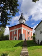 Первоначальный облик храма тщательно скрыт, а воссоздать его можно по ряду некоторых письменных источников и небольшого количества изображений. Именно эти источники могут поведать о и переделках, проведенных в церкви. Первым описанием является опись 1601 года, которая повествует о том, что храм имеет два верха, а звонница располагается на шести столпах. В описи 1668 года представлено уже гораздо большее количество информации: «Главы и кресты спаяны по чешуе при помощи белого золота и были покрыты тесом». Здесь же находится описание двух деревянных папертей на южном и западном фасадах. На иконе, датирующейся 1741 годом, изображение церкви представлено двуглавым при четырехстолпной крыше. В описи 1773 года имеется запись о наличии деревянных крылец на южном и северном фасадах, а на западном входе находилось каменное крыльцо, по бокам которого располагались деревянные столбы. Есть предположение, что именно такое крыльцо изображено на карте монастыря, относящейся к 1786 году. Здесь же представлено описание контрфорсов-«быков», которые сохранились до сегодняшнего времени на западном и южном углах церкви, что нельзя сказать о крыльцах.