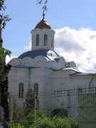 Двухэтажный бесстолпный и одноглавый храм, кирпичный и оштукатуренный, представляет собой высокий четверик, с трех сторон (кроме западной) окруженный слегка пониженными пристройками с апсидами в центре. Основу четверика образует угловая башня ограды, мощные стены которой хорошо читаются в плане здания. Завершают каждую стену по три ложных закомары. Над купольной кровлей поставлен граненый барабан с позолоченой главой и крестом. Византийский характер архитектуре придают “полосатые” фасады с широкой рустовкой, руст архивольтов арочных окон и закомар и рельефные греческие кресты в тимпанах нижних окон и вверху апсид. Выразительны железные двустворчатые решетки входов с растительно-геометрическим орнаментом. Внутри верхний этаж храма перекрыт восьмилотковым сомкнутым сводом с угловыми тромпами и отверстием барабана в шелыге.