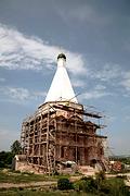 Типологически храм - "восьмерик на четверике", при этом нижний куб массивен, а восьмерик, хоть и широк, но приземист, из-за чего возникает ощущение, что шатровый верх "растёт" прямо из крыши четверика. Подобное решение мы можем увидеть, например, в знаменитой церкви Петра Митрополита в Переславле-Залесском или у Никольской шатровой церкви в Балахне. Кстати, история русского зодчества знает примеры, когда шатёр поднимается от четверика вообще безо всякого восьмерика; таковы, например, Успенская церковь Брусенского монастыря в Коломне и Ефимьевская в Кирилло-Белозёрском монастыре.