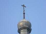Четверик и экседры объединены широким антаблементом, опирающимся на трехчетвертные колонны, поставленные в межоконных простенках; стены по сторонам экседр рустованы. Проемы расположены в два яруса: внизу прямоугольные, вверху полуциркульные, - прием, характерный для позднего классицизма. Фасадное убранство трапезной отличается немногим: карниз дополнен рядом сухариков, вместо трехчетвертных — полуколонны, верхние проемы - ложные. Обработка фасадов колокольни свидетельствует о влиянии барокко. Парные полуколонны по сторонам арок во всех ярусах поставлены с выпуском углов, причем во втором ярусе углы раздвоены; между парами полуколонн переброшены положенные на стену дугообразные арки. В основном объеме храма четыре пилона сложной формы и подпружные арки делят пространство на отдельные боковые ячейки, перекрытые коробовыми сводами, в экседрах - конхи. Над центральной ячейкой - восьмилотковый свод, переходящий в зеркальный. В двустолпной трапезной — система коробовых и крестовых сводов, в первом ярусе колокольни - крестовый свод. На арках четверика — орнаментальная роспись маслом кон. 19 в. Сохранилась архитектурная основа иконостаса в стиле классицизма сер. 19 в.: его центральная часть в четыре яруса соединена с одноярусными боковыми.