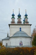 Необычно трактованы барабаны венчания четверика: каждый из них поднят на квадратный постамент и имеет развитый антаблемент, опирающийся на восемь трехчетвертных тосканских колонок, луковичные главы установлены на полусферические кровли барабанов. Четверик перекрыт сомкнутым сводом со световым проемом в шелыге, двустолпная трапезная – коробовыми сводами с распалубками над окнами, южный придел – коробовым.