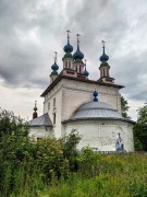 Через несколько лет после сооружения храма (1754), в традициях древнерусской архитектуры, к его западной стене была пристроена большая трапезная с алтарной апсидой, частично скрывшей южный боковой фасад. В 1-й пол. 19 в. четверик получает существующее пятиглавие в стиле зрелого классицизма. В нач. 20 в. трапезная с северной и западной сторон обстраивается крытой галереей; вероятно, тогда же переделываются окна апсиды, получившие арочную форму, вследствие чего изменяется и конфигурация кокошников в их завершении. Каменная ограда с металлической решеткой разрушена. Внутренняя структура переделана при приспособлении здания под склад и ПТУ.