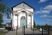 В 1792 г. была заложена каменная двухэтажная церковь и вчерне окончена в 1808 г., когда был освящён главный престол. Первоначально в церкви было три престола: в нижнем этаже два - главный Богоявленский, освящённый 21 декабря 1808 г. архимандритом Сийского монастыря Феофилом, и придельный - во имя вмц. Параскевы, освящённый 2 июня 1822 г. благочинным Василием Павловским, и в верхнем этаже один престол - в честь Покрова Пресвятой Богородицы, освящённый в 1843 г. Придельный храм вмц. Параскевы из-за тесноты был упразднён в 1855 г.В приходе имелась ещё деревянная церковь на приходском клабище во имя Сошествия Св. Духа на Апостолов. Церковь была построена в 1888 г. и снабжена необходимой утварью на средства местных торговцев - крестьян Вальневых и их матери вдовы Екатерины Вальневой, пожертвовавших 5000 руб. Церковь была освящена 28 августа 1890 г.