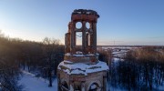 В 1818 г. под руководством известного архитектора М. H. Слепнева завершилось строительство каменного храма во имя иконы Казанской Богоматери, оригинального памятника зрелого классицизма, обладающего редкой гармоничной соразмерностью форм, исполненных с большим изяществом и строгой точностью. Специалисты отмечали роспись купола и ценность иконостаса - "чрезвычайно интересного художественного творения в стиле классицизма ХVIII в. Несколько позднее было сооружено замечательное здание колокольни с тремя ярусами, строгими и изящными, она соединялась с церковью каменной переходной галереей.
