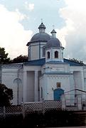 Представляет собой одноглавый восьмерик на четверике, с шестиколонными портиками по фасадам, над притвором деревянная колокольня. В 1912 г. обветшавшая колокольня заменена на каменную трёхъярусную, высотой 11 м. В конце XIX в. были построены новые дома для священника (1894) и псаломщика (1885). При храме располагались сторожка и дом просфорни. Имелась в приходе и библиотека, в которой на 1866 г. было всего 26 томов, а в 1912 г., спустя полвека – 115.