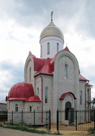 13-метровый храм был возведён в древнерусском стиле по проекту архитектора А.Б. Логвинова, а посвящен он великомученику Георгию Победоносцу.