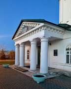 Сведения о реставрации: В 1992 году частично восстановлен, без портиков на южном и северном фасадах.