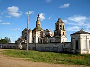 Кирпичная, двухэтажная, шестипридельная церковь. В плане имеет форму креста с удлиненным западным рукавом. По типологической принадлежности относится к центричным, бесстолпным храмам с ярусным завершением. Здание церкви сооружалось за два строительных периода. Первоначально, в 1800—1818 гг., были построены четверик, являющийся теперь центральным ядром храма, и отдельно стоящая колокольня. Затем, в 1870-е гг., церковь была значительно расширена за счет обстройки четверика равновеликими двухъярусными объемами в полную высоту здания. Дополнительно конфигурация плана усложнилась небольшими квадратными выступами, заполнившими углы креста с внешней стороны. Возможно, в эти же годы или позднее колокольня была соединена с храмом крытым притвором, а ее нижний ярус усилен по углам мощными контрфорсами. Тогда же к северной стене трапезной пристроили галерею в один ярус, нарушившую правильность крестовой композиции церкви.