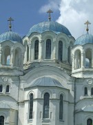 В течение 1941-1943 гг. в результате боевых действий центральная баня храма была разрушена, ее отстроили после войны в немного измененных формах – высоту подбанника несколько уменьшили, а первобытный эллипсоидный купол заменили сплющенным сферическим. В 1983 г. ее ремонтировали. До ремонта центральную баню венчал первобытный «расцветший крест», выполненный по чертежам автора храма А.Л.Гуна для одного из боковых верхов. В 1983 г. все кресты заменили новыми, что по форме не отвечают православным – это католические так называемые кардинальские кресты.