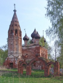 Характерный для района сельский храм, объемная композиция и декор которого выдержаны в традициях костромского культового зодчества 17 столетия. Расположен у пологого склона холма к востоку от небольшого села, рядом с железной дорогой. Церковь Троицы с приделом Смоленской Богоматери возведена в 1772 г. на средства прихожан и других жертвователей. Видимо, в нач. 19 в. основание колокольни укрепили контрфорсами, примыкающими к углам четверика, а несколько позже к его северному фасаду пристроили палатку, от которой уцелел небольшой фрагмент стены. Первоначально церковную территорию, включающую приходское кладбище, ограничивала канава и земляная насыпь, а в нач. 20 в. соорудили ограду с воротами перед западным входом в храм. Утрачен свод трапезной и главка над центральным проемом ворот, от ограды по южной границе участка частично сохранился кирпичный цоколь и несколько столбов, к которым крепилась металлическая решетка. Первоначально кирпичные стены церкви были покрыты слоем известковой обмазки.