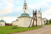 Церковь Троицы. Расположена в восточной части комплекса, у спуска пологого холма к р. Черная (Фабричка). К настоящему времени трапезная утрачена, а первоначальный вход со стороны трапезной заложен. Стены кирпичные, побеленные по обмазке. Церковь имеет четырехскатную железную кровлю и чешуйчатое железное покрытие глав. Крупное сооружение соборного типа, архитектурные формы которого, отличающиеся нарядным фасадным декором, характерны для храмов костромского региона рубежа 17-18 вв. К двусветному поставленному на необычно высокий подклет четверику примыкает сильно пониженная алтарная часть с тремя неглубокими скруглениями апсид. Трапезная была значительно смещена к северу с центральной оси и охватывала северо-западный угол четверика, что привело к различному расположению проемов на боковых сторонах храма. Убранство фасадов образует ярусную композицию. Широкий профилированный пояс с поребриком отделяет подклет. Лопатки на углах первого яруса заменены во втором пучком из пяти колонн: трехчетвертная угловая и заглубленные в стену полуколонны, обращенные по две на каждый фасад. Широкий карнизный пояс над ними раскрепован. Фасады завершает высокий аттиковый ярус с пятью килевидными арками декоративных закомар, среди которых центральная выделена большим размером. Окна на трехосевом южном фасаде более крупные во втором световом ярусе. Их проемы фланкируют наборные колонки, а завершения в виде разорванных фронтонов, достигающие карнизного пояса, близки формам московского барокко. Нижние проемы обрамлены колонками с поясками и трехлопастными килевидными кокошниками. Полукружия апсид разделены трехчетвертными колонками на пьедесталах и опираются на арочные стены подклета, представляющие собой торцы распалубок над небольшими окнами. Барабаны угловых глав декорированы поясками поребрика, а центральный, кроме того, - аркатурой.