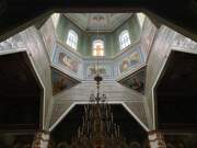 Храм деревянный, трёхпрестольный, пятикупольный в единой связи с колокольней. Выкрашен в бело-голубые тона и богато декорирован деревянной же орнаментацией. Архитектурной особенностью является завершение и восьмерика центрального объёма и колокольни венцом кокошников. Внутри храм ещё более богато и со вкусом декорирован. Иконостасы являют собой прекрасный образец классического русского многоярусного иконостаса периода конца Империи.