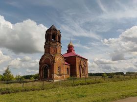 Село расположено почти на западной границе Бирского уезда, близ берега р. Сюнь, изначально населено крещёными вотяками (удмуртами). Храм построен в 1892-95 гг. на средства купца В.Г. Груздева (представителя известной династии купцов-хлебопромышленников Уфимской губернии); кирпич производили из местной глины на местном кирпичном заводике. Освящена церковь 25 сентября 1895 г.