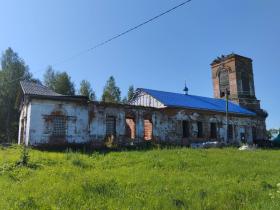 Кирпичная трёхпрестольная церковь, построена на средства местного владельца С.А. Норова. Позднее перестраивалась (колокольня). Приделы: Никольский и Сергиевский. Представляла собой одноглавый восьмерик на четверике с трапезной и ярусной колокольней. В советское время закрыта, перестроена (снесён восьмерик), в здании размещена деревообрабатывающая мастерская. В настоящее время заброшена, разрушается. В октябре 2015 возле церкви установлен и освящён памятный крест.