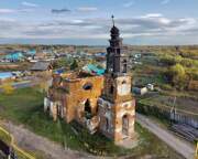 В 1796 г. был начат капитальный ремонт церкви. К октябрю 1797 г. храм был обшит тесом, устроена новая тесовая крыша и новые «бочки», перед папертью выстроено новое рубленое крыльцо. К началу XIX в. церковная колокольня сильно обветшала, поэтому в 1806 г. прихожане решили ее разобрать и выстроить другую из нового леса с включением старых бревен. Новая колокольня была выстроена высотою от земли до слухов около 7 саженей, при слухах поставлены столбы высотою в 4 аршина, на которых установлен купол с крестом. Внутри устроены новые крепкие лестницы с перилами. В 1818 г. местные крестьяне Иван Распопов и Архип Рогов покрыли трапезу церкви новым тесом и переправили рундук. Но храм продолжал ветшать и со временем наклонился на северную сторону. К 1835 г. церковь пришла в окончательную ветхость, вновь начала склоняться на северную сторону, и по этой причине указом Тобольской духовной консистории прихожанам было предписано немедленно исправить храм, по крайней мере, в самых нужнейших частях. Предписание это исполнено не было, поэтому в 1837 г. церковь по причине ветхости была запечатана местным благочинным. В том же году, решив выстроить новый храм, прихожане подали прошение с просьбой распечатать старую церковь для проведения в ней богослужений до устройства новой, что и было разрешено епархиальным начальством в том же 1837 г. после проведения необходимого ремонта. После освящения в селе нового каменного храма, здание деревянной церкви в 1848 г. с согласия прихожан было продано и вскоре перевезено в д. Давыдовку Чернавской волости для устройства приходского храма. Позже на месте, где располагалась ранее церковь, был установлен каменный памятник.