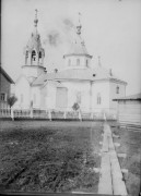 Разумеется, пока известно всего три сходных постройки, какие-либо однозначные выводы делать рано. Однако в данном контексте следует упомянуть еще один памятник. Это церковь Зосимы и Савватия Соловецких в Надвоицах – бывшем Воицком погосте на реке Выг – на том самом пути из Онежского озера в Соловецкий монастырь, как раз посередине между Повенцом и Муезером. Она не дожила до наших дней, но сохранилась ее фотография. Первая Зосимо-Савватиевская церковь была устроена здесь в 1630 г. на средства Соловецкого монастыря. Храм же, который мы видим на снимке, был построен в 1852 г. на месте прежнего сгоревшего. Несмотря на позднюю дату создания, он обладал почти идентичным с повенецким собором устройством храмового столпа. Высокая клеть основного объема, крытая на два ската, несла надстройку в виде восьмерика на четверике с покрытием наподобие небольшого шатра. Не исключено, что решение храмового столпа церкви середины XIX в. возникло как повторение сложившейся гораздо раньше в этом регионе типологии.