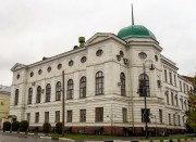 Архитектурный ансамбль объединил в единое целое три сооружения, созданные представителями разных архитектурных стилей и разных веков. Этот комплекс, сохранивший свою самобытность и колорит до настоящего времени, привлекает внимание строгостью и красотою архитектурных форм. В наши дни старая часть практически не изменилась: были заложены окна северного фасада на первом и втором этажах. Самая значительная переделка произведена в корпусе по Ленинградской улице. Двухэтажное пространство бывшей церкви расчленено новым междуэтажным перекрытием. В отдельные интерьеры реконструированного здания введена декоративная обработка с мотивами, отвечающими его современному использованию. Входная часть выделена выступающим объёмом, украшенным балюстрадой балкона второго этажа. В центральном ризалите окна второго и третьего этажей арочные с замковым камнем. Простенки этих этажей украшены пилястрами, которые на втором этаже желтые, а на третьем белые. Первый и второй карниз разделяет междуэтажный карниз. Первый этаж по всему периметру здания выделен рустом. В боковых частях здания окна прямоугольной формы украшены наличниками, причём на втором этаже более тяжеловесной формы.
