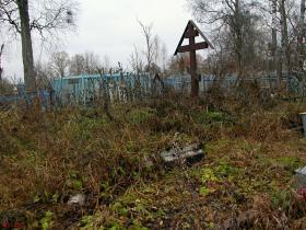 В 1897 г. в селе возникло второе приходское кладбище, которое было устроено по дороге в д. Лютивля. В 1900 г. вокруг кладбища была устроена кирпичная ограда. Здесь же в самом начале в 1904-07 гг. была устроена вторая деревянная церковь, а в 1910 г. к ней пристроена колокольня (не сохр.). В ней продолжались службы уже после закрытия основного каменного храма – об этом свидетельствует пожилая учительница Валентина Ивановна Боренкова (1901 г. р.). Она рассказывает, что её отца одним из последних отпевал священник с хором в ещё действовавшей деревянной церкви. В эту же деревянную церковь была перенесена часть утвари из закрытого в 1931 г. каменного Преображенского храма. «Церковь была тёплая и уютная, - вспоминает В.И. Боренкова, - разорял её председатель сельсовета Синявин Николай Васильевич и куда-то увёз её, утварь неизвестно куда подевалась. Другую часть утвари разобрали жители по домам».