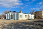 Первый православный храм в современной истории города, сооружён и открыт ещё до переименования Шевченко в Актау. Построен на выделенном приходу участке на восточном краю города из двух сборных щитовых солдатских казарм, службы начались с престольного праздника Благовещения 7 апреля 1990 года. Простой прямоугольный в плане объём под двускатной крышей, с небольшой главкой с крестом на низком постаменте. С 1996 года на том же участке, но южнее временного храма строилась полноценная Благовещенская церковь, с 2000 года большинство служб совершаются в ней. Во временном храме сохранён Благовещенский престол, однако для богослужений здание используется эпизодически, в основном в нём служатся панихиды (рядом расположено православное кладбище).