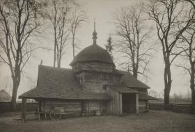 Деревянная церковь, возведенная в 1806 году на месте более древней (Св. Георгия 1715 г., которая сейчас находится в г. Новояворовск), проданной в Ольшаницу. Была интересным зданием галицкого типа. Состояла из более широкого квадратного нефа, более узкого прямоугольного бабинца и ровно широкого бабинца прямоугольного алтаря. Над навой на низком световом восьмерике вздымалась большая шлемовая баня (крыша) с фонарем и макушкой. Высший сруб алтаря покрывал три склона крыши. Нижний сруб бабинца был покрыт двускатной причелковой крышей, склоны которой плавно переходили в широкое поддашие, опоясывавшем постройку. Поддашие опиралось на профилированные выпуски венцов срубов.