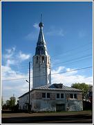Столпообразная, восьмигранная в плане колокольня с арочным ярусом звона и граненым шатром - характерный памятник традиционной архитектуры местных торговых сел. Углы восьмерика огибают лопатки, пересеченные под арками звона широким поясом с поребриком. Импосты и архивольты арок также обработаны поребриком, а на ребрах их устоев помещены трехчетвертные колонки. Шатер, завершенный луковичной главкой, прорезан тремя рядами слухов.
