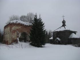 Христорождественский храм, построенный по грамоте от 14 июня 1653 г., сгорел. Вместо него, по грамоте архиепископа Афанасия от 29 марта 1683 г. построен новый храм с приделом во имя мучч. Флора и Лавра. Главный храм освящен 2.7.1685, придельный - 17.7.1685. Храм существовал более 200 лет. Вследствие ветхости и опасности, грозившей из-за подмытия берега реки Ваги, он был разобран. Вместо него рядом с каменным храмом построен в 1887 г. храм во имя мучч. Флора и Лавра. В 1892 г. древний иконостас из разобранной церкви возобновлен на средства (250 руб.) прихожанина Герасима Шелагина. Приписная церковь: в д. Наум-Болотовской (7 верст от прих. храмов), каменная, во имя Николая Чудотворца, построенная вместо часовни на средства прихожанина Пимена Матвеева, освящена 1.2.1817. В 1883 г. прихожанином, впоследствии вытегорским купцом, Василием Матвеевым был пожертвован колокол в 18 пуд. 34 ф. Поддерживалась церковь вытегорской купчихой Евдокией Матвеевой.