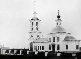 Преображенская с. Гусево каменная, с каменною колокольнею. Построена в 1833 г. на средства прихожан. Вокруг церкви каменная ограда, в коей кладбище. Престолов 3: а) в холодной во славу Преображения Господня, в теплой б) правый во имя святит. Николая Мирликийского, в) левый во имя преп. Александра Свирского. Расстояние от Костромы 180 в., от Солигалича 35 в. Ближайшие церкви: Воскресенская с. Жилина в 5 в., Благовещенская с. Холма в 9 в. и Успенская с. Нижнего-Березовца в 12 в. Сохранилась только колокольня церкви.