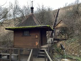 Проезд: Самый короткий путь: из села Башино на юг до точки 54.684952, 37.929054, оттуда начинается полевая дорога велущая на юго-восток, через 1,6км будет место, где можно оставить авто, оттуда вниз по ступеням до часовни