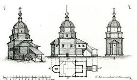 Деревянная церковь. Утрачена. (вся деревянная архитектура в каталоге →)