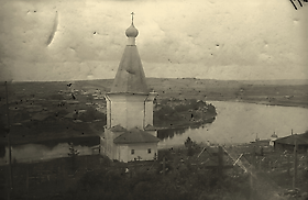 Деревянная шатровая типа восьмерик на четверике Георгиевская (Ильинская) церковь Волюжского прихода Вельского уезда Вологодской губернии, освящена в 1775 году. Имела престолы во имя великомученика Георгия Победоносца и во имя пророка Илии. В 1893 году возобновлена [проведён капитальный ремонт с последующим освящением].