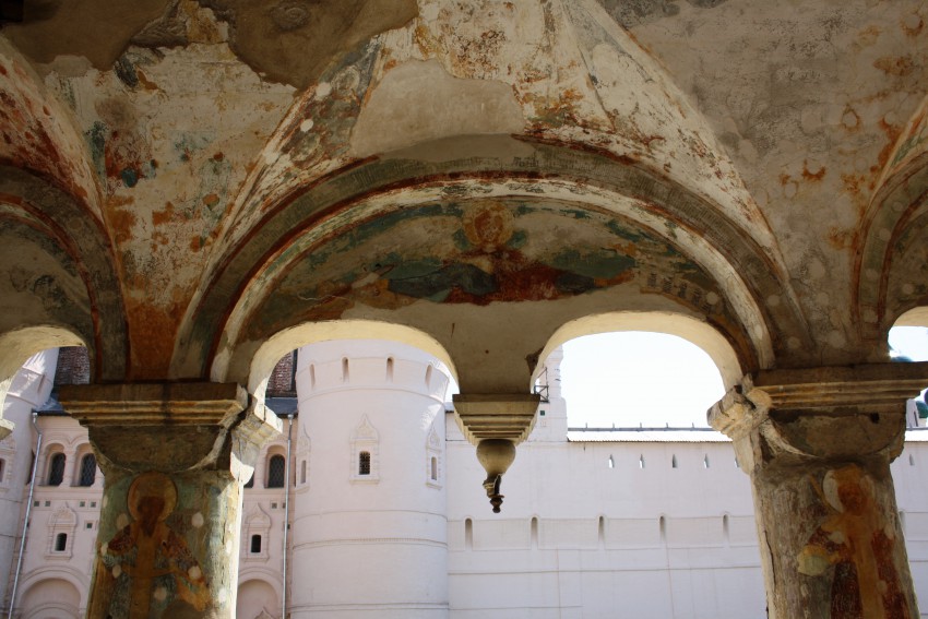 Фрески крыльца собора, архитектурные детали. Митрополичий двор. Кафедральный собор Успения Пресвятой Богородицы, Ростов Великий (Ростовский район, Ярославская область)