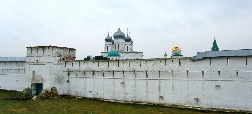 фрагмент северной стены с северной надвратной башней, над стеной видны завершения монастырских храмов