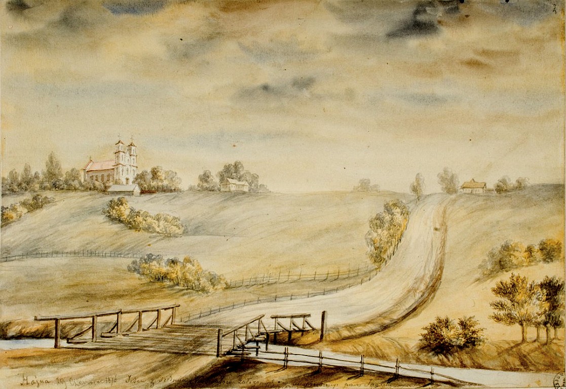 Фото с сайта:http://orda.of.by/.add/gallery.php?gajna/utr_kostel/sf Гайна на картине Наполеона Орды (1876 г.)
