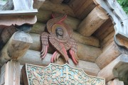 Верхний киот. Установлен в 2014 году. Резные иконы прп. Сергия Радонежского, прп. Никона Радонежского и прп. Романа Киржачского выполнены из дерева на Богородской фабрике художественной резьбы