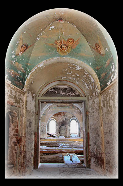 "Тебя ангелы встретят у входа..." - на потолке при входе сохранились ангелы. Один из них до странного похож на юного Пушкина...